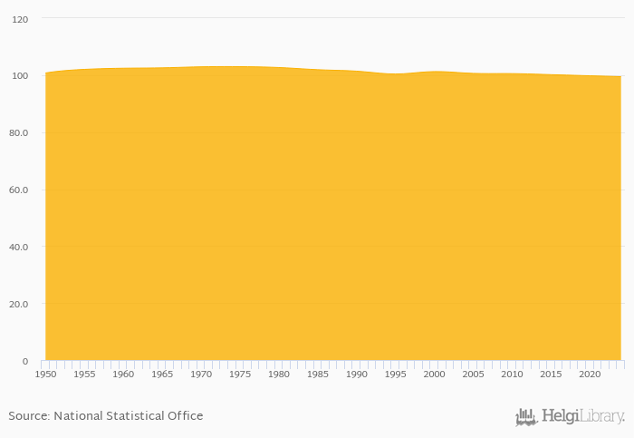 Historically, sex ratio measured by males per 100 females in Macedonia reached an all time high of 103 persons in 1973 and an all time low of 99.5 persons in 2024.