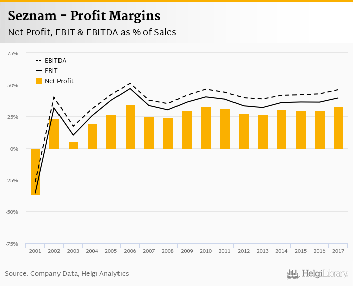 Seznam made a net profit of CZK 1,338 mil with revenues of CZK 4,117 mil in 2017, up by 20.9% and up by 11.1%, respectively, compared to the previous year.