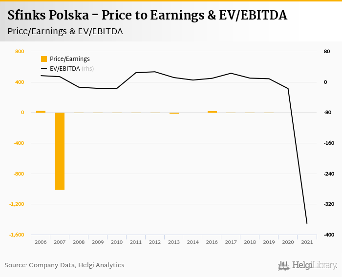 Sfinks Polska stock traded at PLN 0.450 per share at the end 2021 translating into a market capitalization of USD 3.57 mil.