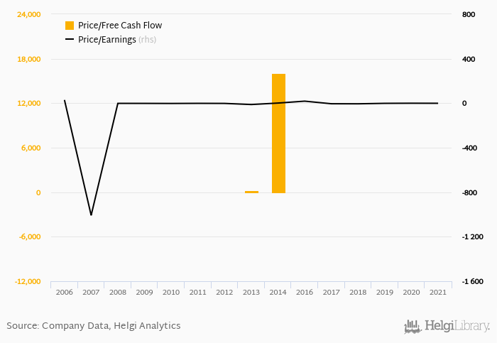 At the end of 2021, the firm traded at price to earnings of -0.740x. Over the last five years, this multiple achieved a high of -0.237x in 2020 and a low of -5.36x in 2018 with an average of -2.48x.