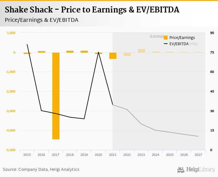 Shake Shack stock traded at USD 70.1 per share at the end 2021 translating into a market capitalization of USD 2,949 mil.