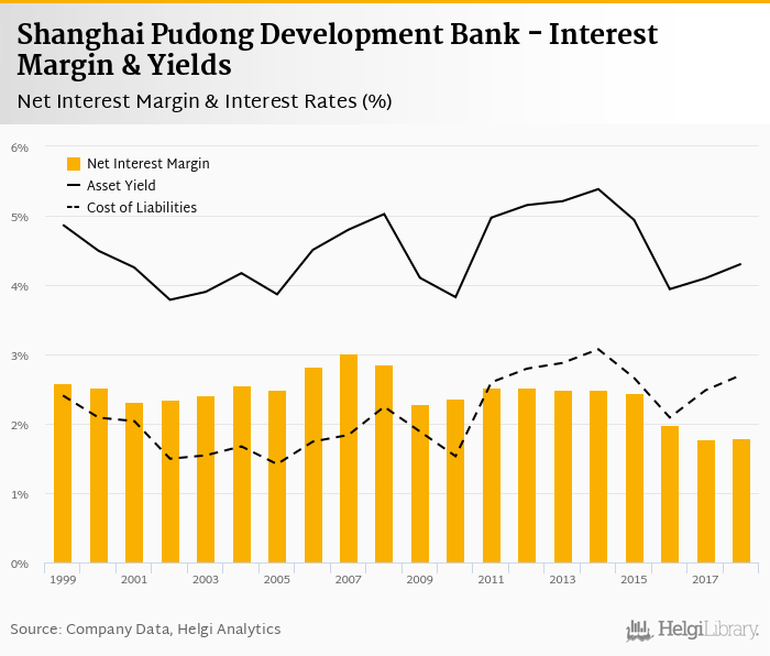 Shanghai Pudong Development Bank's net interest margin amounted to 1.80% in 2018, up from 1.78% compared to the previous year.