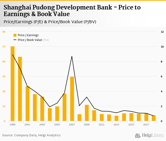 Shanghai Pudong Development Bank stock traded at CNY 9.80 per share at the end 2018 implying a market capitalization of USD 36,737 mil.