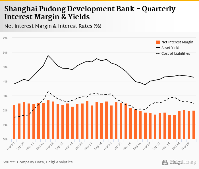 Shanghai Pudong Development Bank's net interest margin amounted to 1.99% in the second quarter of 2019, up from 1.96% when compared to the previous quarter.