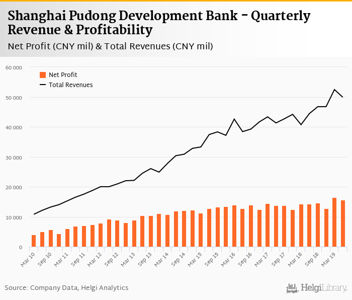 Shanghai Pudong Development Bank made a net profit of CNY 15,647 mil under revenues of CNY 49,889 mil in the second quarter of 2019, up 9.7% and 12.3% respectively when compared to the same period last year.