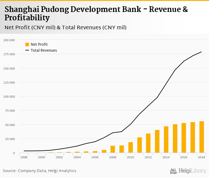Shanghai Pudong Development Bank made a net profit of CNY 55,914 mil under revenues of CNY 178,631 mil in 2018, up 3.05% and 4.17% respectively compared to the previous year.