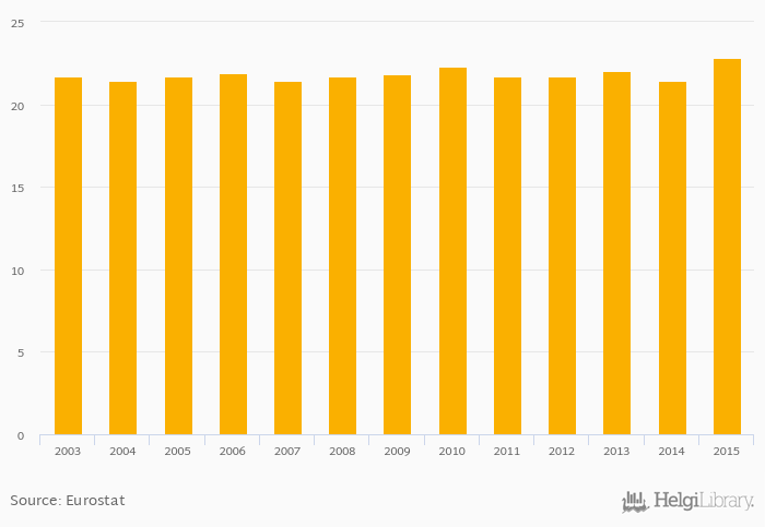 | Ireland | ... | ... | ... | ... | ... | ... | ... | 22.3 | 21.7 | 21.7 | 22.0 | 21.4 | ... | |||||||||