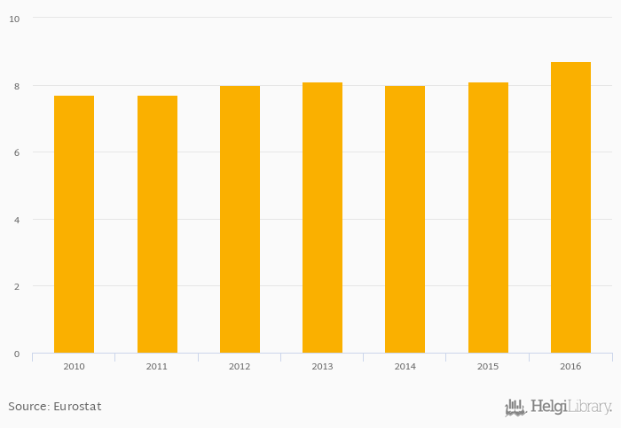 Historically, Share of Households with 5 Persons in Croatia reached an all time high of 8.70 in 2016 and an all time low of 7.70 in 2010.