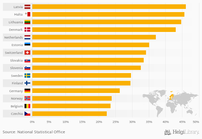 | Latvia | % | ... | ... | ... | ... | ... | ... | ... | ... | ... | ... | ... | ... | ... | ... | ... | ... | 42.9% | ... | ... | ... | |