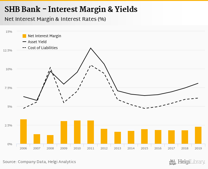 SHB Bank's net interest margin amounted to 2.29% in 2019, up from 1.82% compared to the previous year.