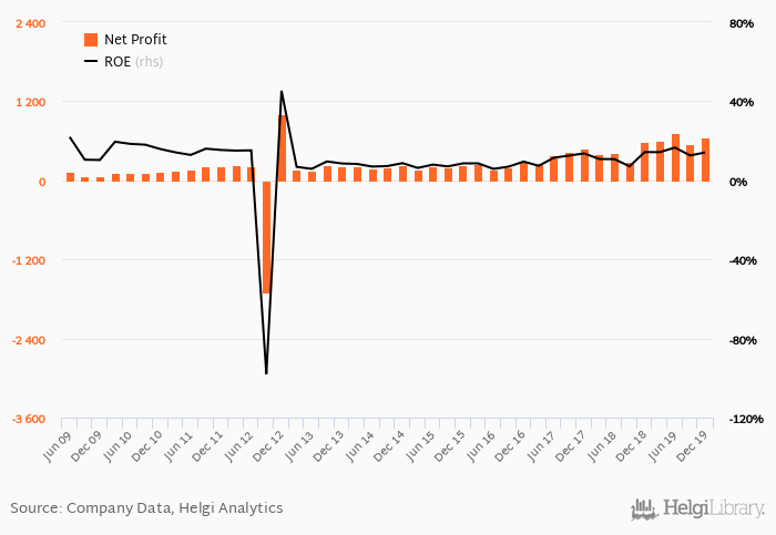 The bank generated its shareholders an average return on equity of 10.3% in the last five years with maximum at 16.6% and minimum at 5.78%.