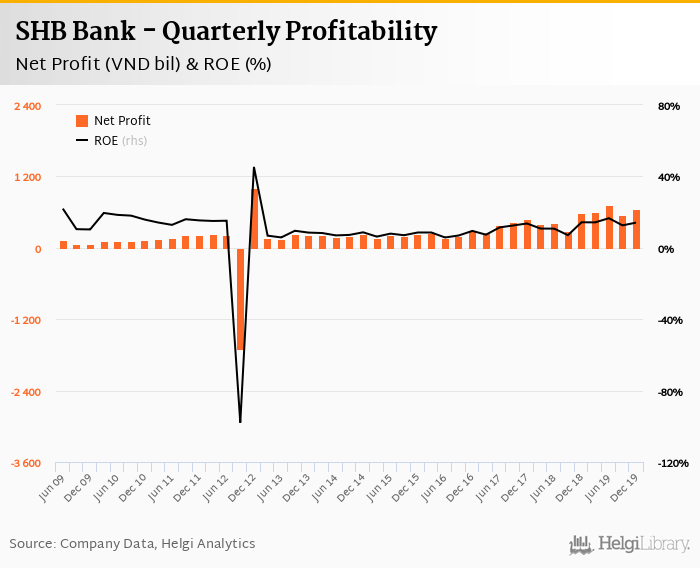SHB Bank made a net profit of VND 651 bil in the fourth quarter of 2019, up 12.4% when compared to the same period of last year. This implies a return on equity of 14.1%.