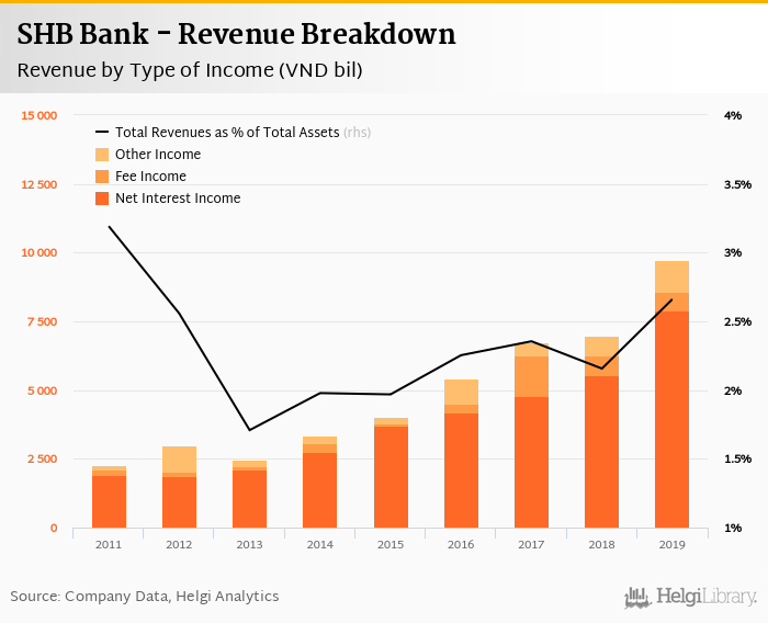 SHB Bank generated total banking revenues of VND 9,731 bil in 2019, up 39.6% compared to the previous year.