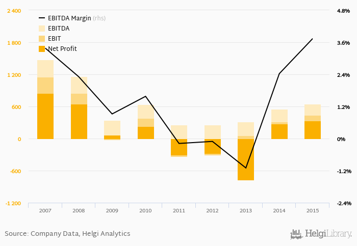 Historically, between 2007 - 2015, the firm’s net profit reached a high of CZK 849 mil in 2007 and a low of CZK -771 mil in 2013. Since 2010, the firm's net profit has increased 50.7% or 8.56% a year on average.