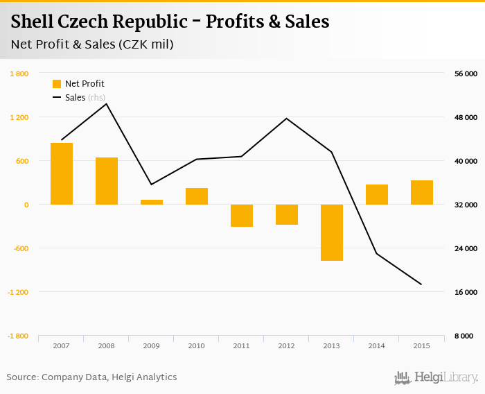 Shell Czech Republic made a net profit of CZK 338 mil in 2015, up 22% compared to the previous year. Total sales reached CZK 17,231 mil, which is down 24.8% when compared to the previous year.