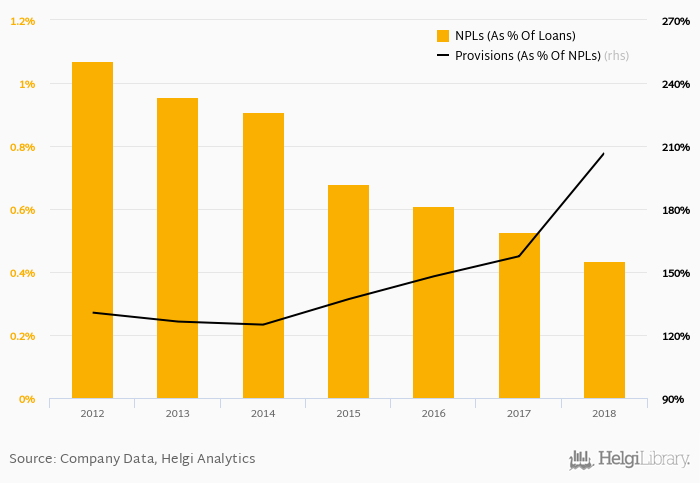 The bank created loan loss provisions worth of 0.260% of average loans in 2018. That's compared to 0.419% of loans the bank put aside to its cost on average in the last five years.