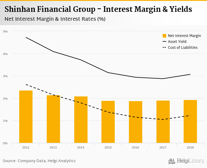 Shinhan Financial Group's net interest margin amounted to 1.94% in 2018, up from 1.91% compared to the previous year.