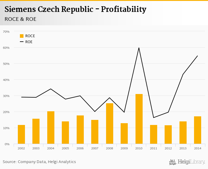 As far as Siemens Czech Republic's peers are concerned, Varroc Lighting Systems Czech Republic generated ROE of 39.2% and ROCE of 30.7% in 2014. Automotive Lighting's profitability reached 43.1% and 35.9%, respectively. Continental Automotive Czech Republic operated with 17.7% and 4.79% returns in 2014.