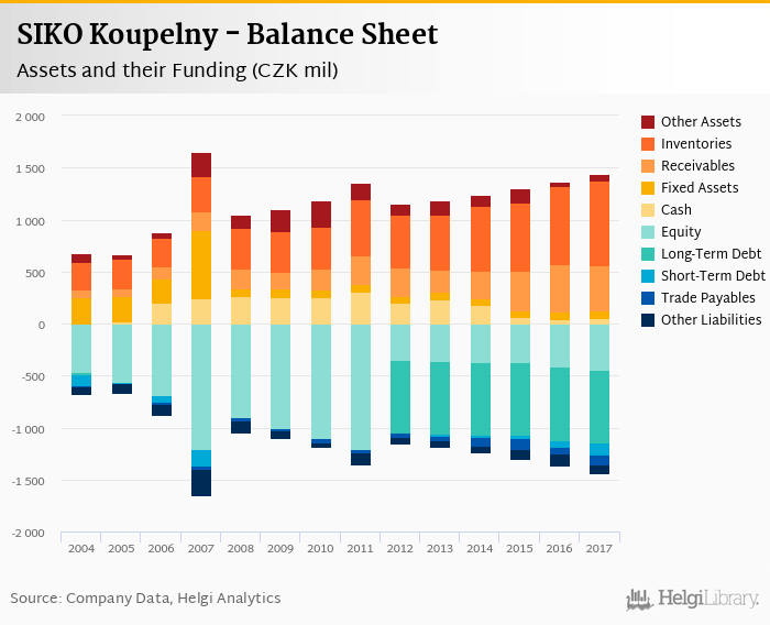 SIKO Koupelny's total assets reached CZK 1,440 mil at the end of 2017, up 5.55% compared to the previous year.