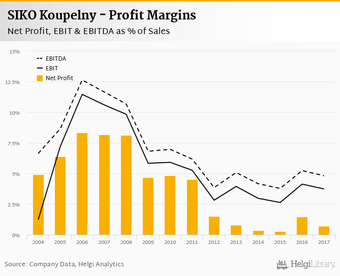 SIKO Koupelny made a net profit of CZK 22.2 mil with revenues of CZK 3,023 mil in 2017, down by 49.1% and up by 1.3%, respectively, compared to the previous year.