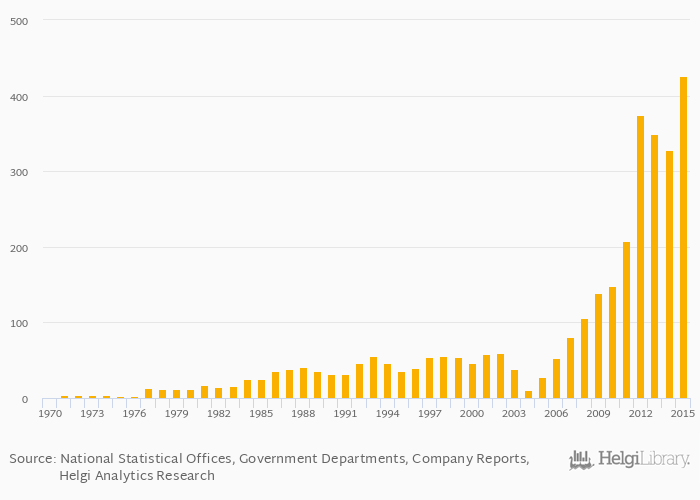 Silver (mine) production rose 30.2% to 426 kt in India in 2015, according to the National Statistical Office.