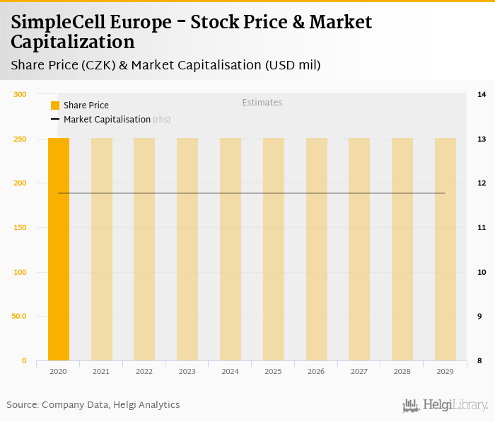 SimpleCell Europe stock traded at CZK 252 per share at the end 2020 implying a market capitalization of USD 11.8 mil.