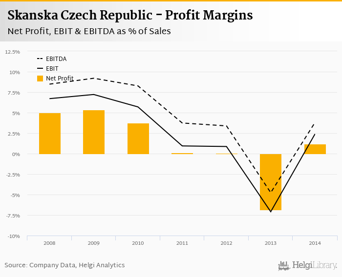 Skanska Czech Republic made a net profit of CZK 149 mil with revenues of CZK 12,400 mil in 2014, up by 122% and up by 22.9%, respectively, compared to the previous year.