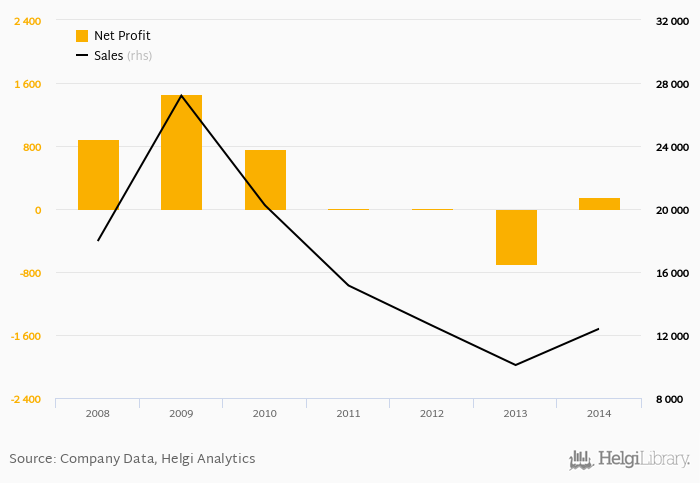 Sales have fallen by 14.5% a year on average since 2009. They reached a high of CZK 27,199 mil in 2009 and a low of CZK 10,093 mil in 2013.