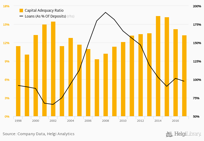 Bank's loan to deposit ratio reached 97.5% at the end of 2017, down from 101% when compared to the previous year. Some 10 years ago, loan to deposit ratio of the bank amounted to 180%.