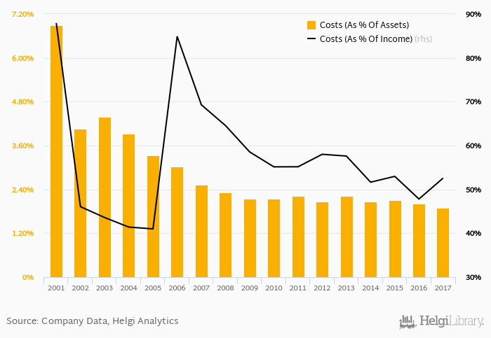 When compared to total assets, bank's cost amounted to 1.90% in 2017, down from 2.00% a year earlier.