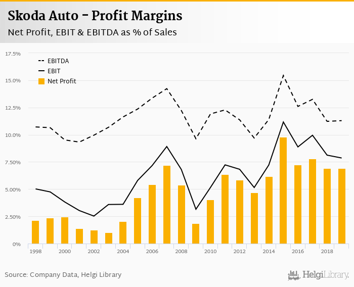 Skoda Auto made a net profit of CZK 31,689 mil with revenues of CZK 459,122 mil in 2019, up by 9.68% and up by 10.2%, respectively, compared to the previous year.