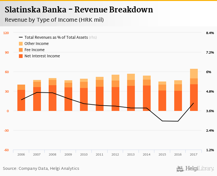 Slatinska Banka generated total banking revenues of HRK 64.7 mil in 2017, up 36.9% compared to the previous year.