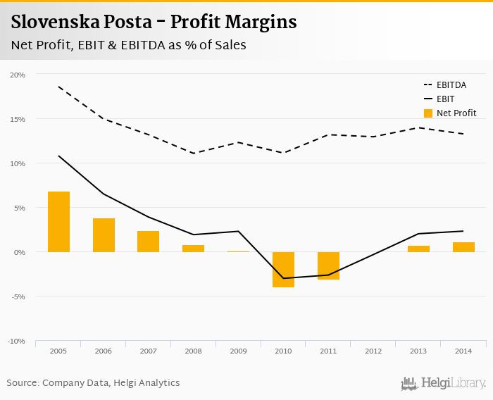 Slovenska Posta made a net profit of EUR 3.31 mil with revenues of EUR 305 mil in 2014, up by 54.7% and down by 3.03%, respectively, compared to the previous year.