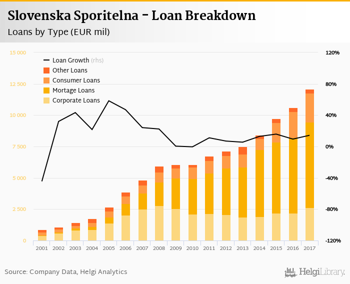 At the end of 2017, Slovenska Sporitelna's loans accounted for 93.9% of total deposits and 71.7% of total assets.