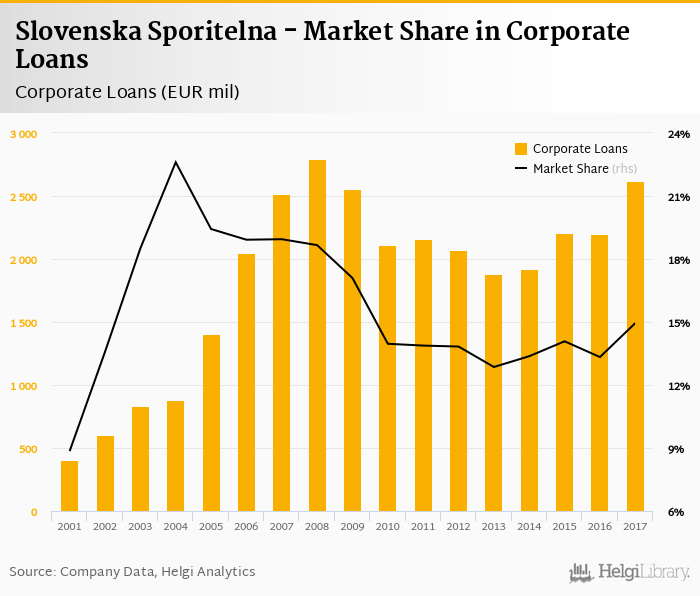 Slovenska Sporitelna's corporate loans reached EUR 2,619 mil in 2017, up 19.0% compared to the previous year.