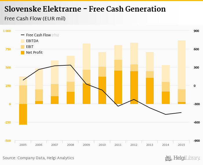 Slovenske Elektrarne made a net profit of EUR 26.1 mil with revenues of EUR 2,362 mil in 2015, down by 84.6% and down by 4.49%, respectively, compared to the previous year. This translates into a net margin of 1.11%.
