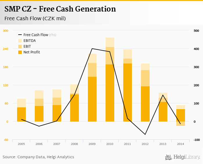 SMP CZ made a net profit of CZK 40.9 mil with revenues of CZK 2,328 mil in 2014, down by 36.5% and up by 22%, respectively, compared to the previous year. This translates into a net margin of 1.76%.