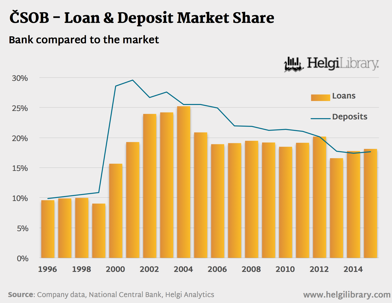 ČSOB - Market Share in Loans & Deposits (1996-2015)