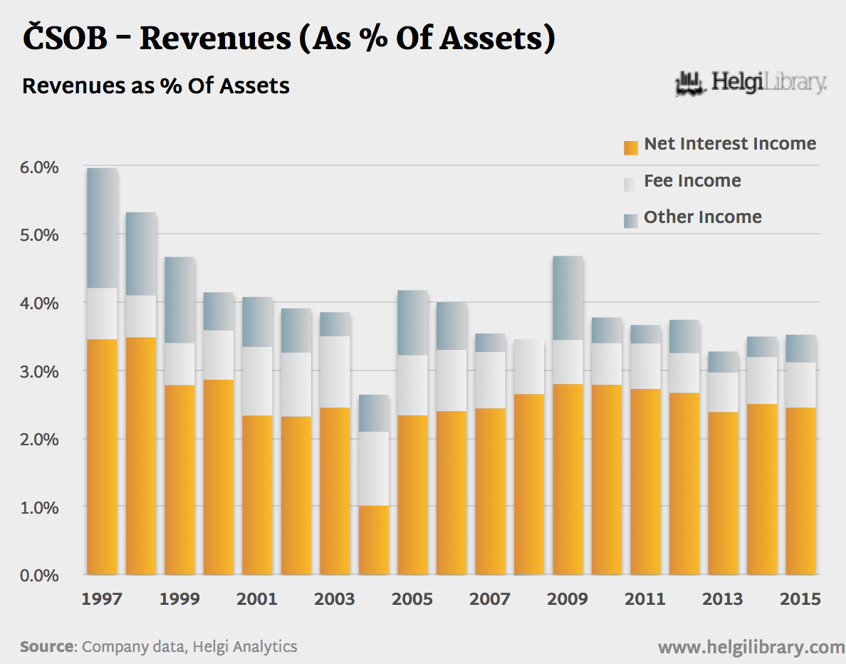 The bank was privatized in 1999, when Belgium’s KBC became the majority owner (and sole owner in 2007). Since 2003, ČSOB's net profit has increased more than fourfold and the bank's ROE exceeded 17% on average in 2006-2015. The bank is well capitalized and funded and has been lending cautiously.