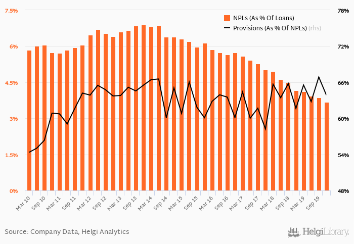 Provision coverage amounted to 63.8% at the end of 2019-12-31, up from 61.7% compared to a year earlier.