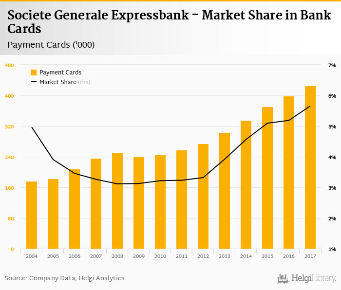 Societe Generale Expressbank has issued total of 426 '000 payment cards at the end of 2017, up 6.77% compared to the previous year.