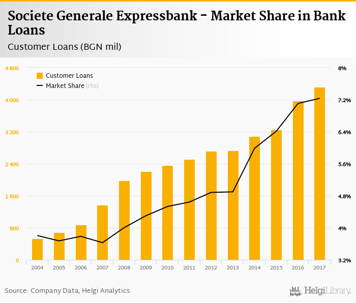 Societe Generale Expressbank's customer loans reached BGN 4,316 mil in 2017, up 8.68% compared to the previous year.