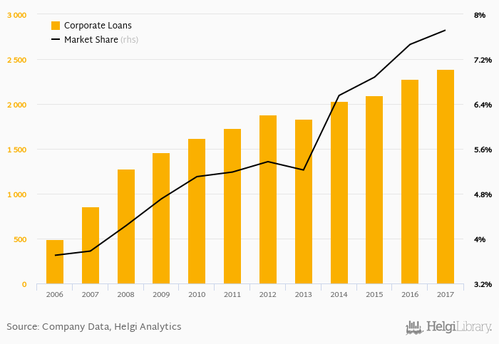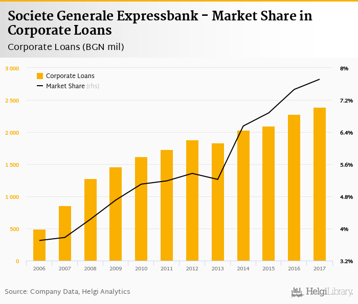 Societe Generale Expressbank's corporate loans reached BGN 2,392 mil in 2017, up 5.08% compared to the previous year.