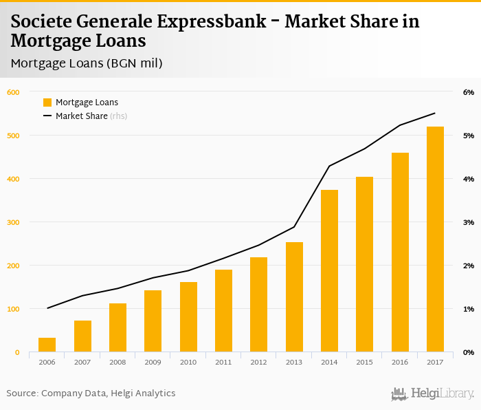 Societe Generale Expressbank's mortgage loans reached BGN 520 mil in 2017, up 13.2% compared to the previous year.