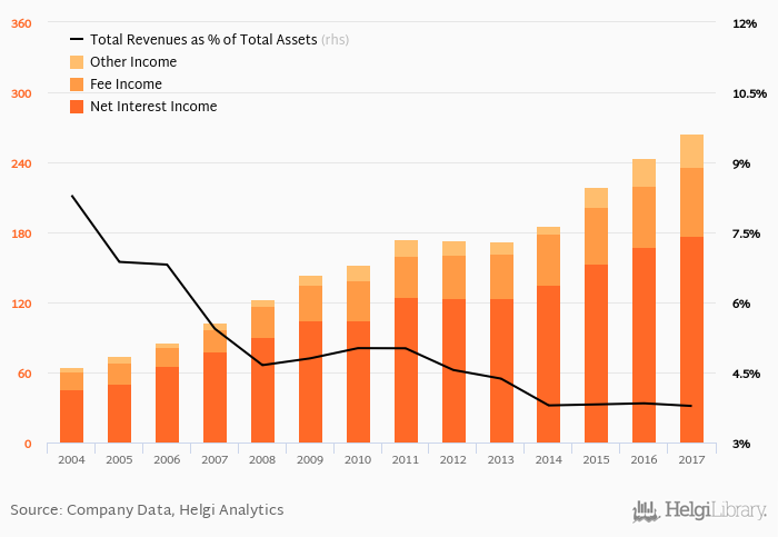 Bank's total revenues accounted for 3.78% total assets in 2017, down from 3.84% a year earlier.