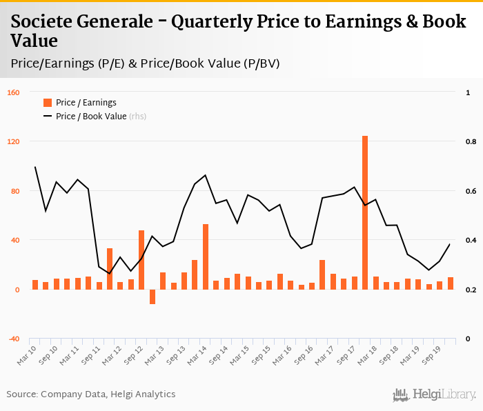 Societe Generale stock traded at EUR 31.4 per share at the end fourth quarter of 2019 implying a market capitalization of USD 28,541 mil.