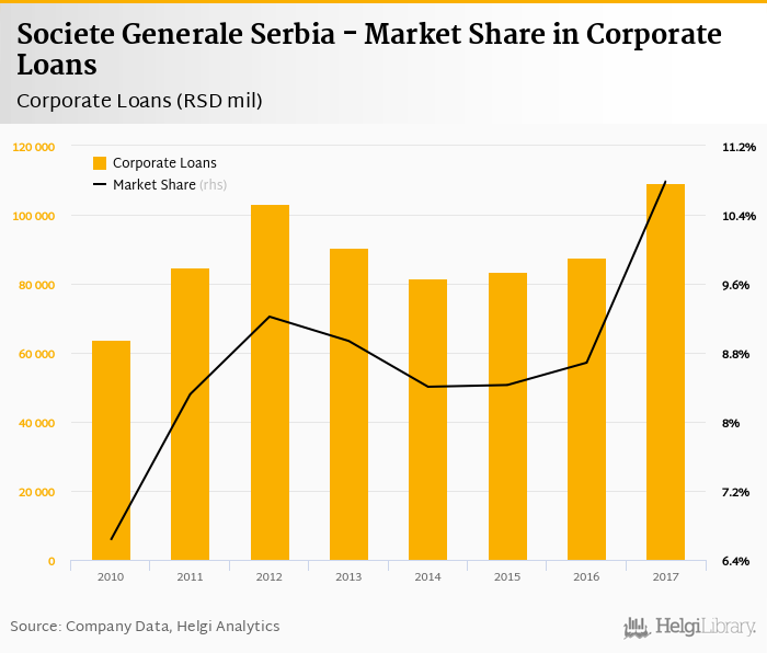Societe Generale Serbia's corporate loans reached RSD 109,204 mil in 2017, up 24.5% compared to the previous year.