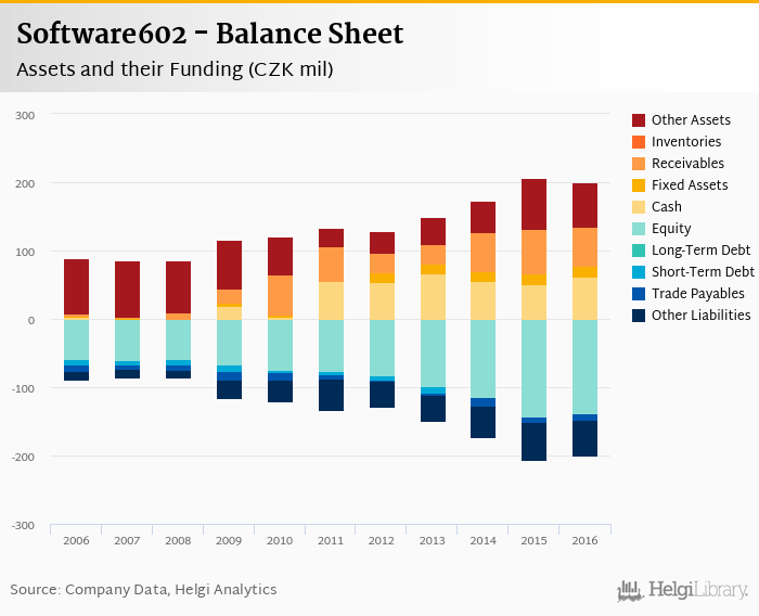 Software602's total assets reached CZK 200 mil at the end of 2016, down 3.35% compared to the previous year.