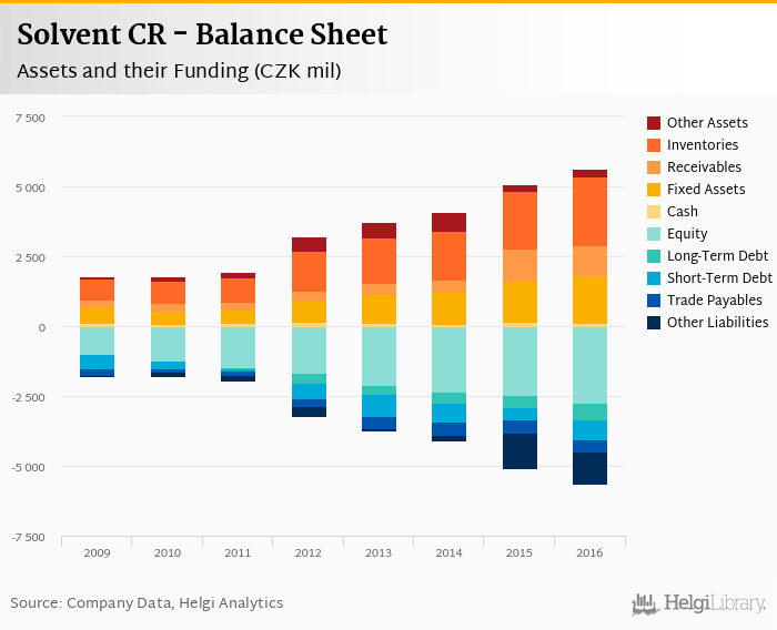 Solvent CR's total assets reached CZK 5,630 mil at the end of 2016, up 10.5% compared to the previous year.