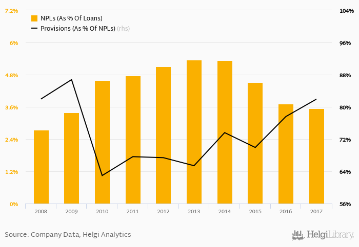 Provision coverage amounted to 81.9% at the end of 2017, up from 77.6% compared to a year earlier.